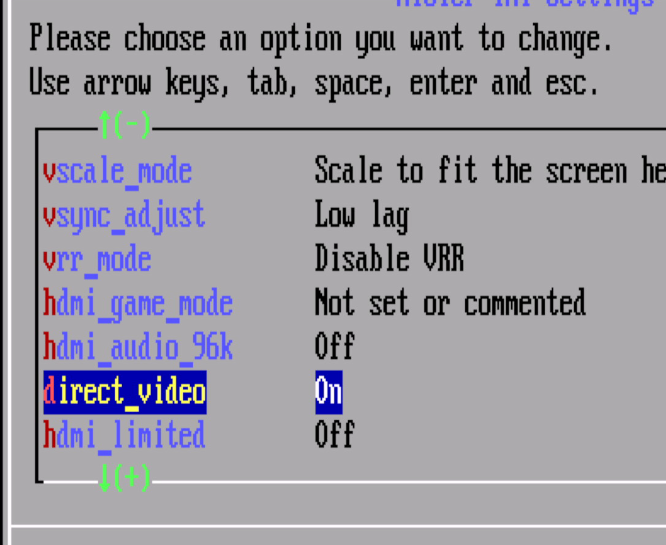 As mentioned earlier, Direct Video can cause the MiSTer main menu to look rough and does not work correctly with certain PC-style cores such as ao486 and X68000. These issues can be addressed by selectively disabling Direct Video for specific components while keeping it enabled globally for everything else.