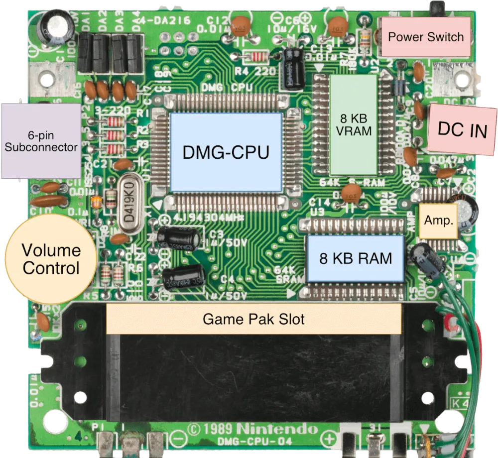 The Brains: The builder is using a MGB (Game Boy Pocket) CPU for the custom electronics, rather than the original DMG CPU.