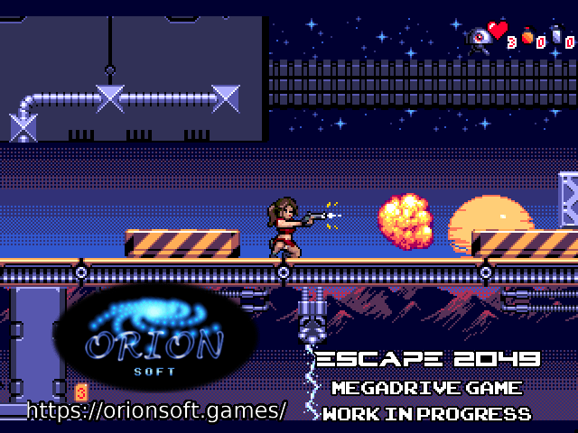 OrionSoft has revealed their latest project, Escape 2049, a brand-new indie game in development for the Sega Genesis / Mega Drive. The first screenshot showcases a side-scrolling action game with detailed pixel art, a sci-fi setting, and plenty of retro charm.