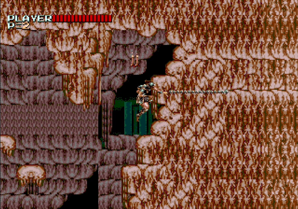 • Controls: The game uses a three-button configuration, offering distinct controls for jumping, using the whip, and deploying the sub-weapon.