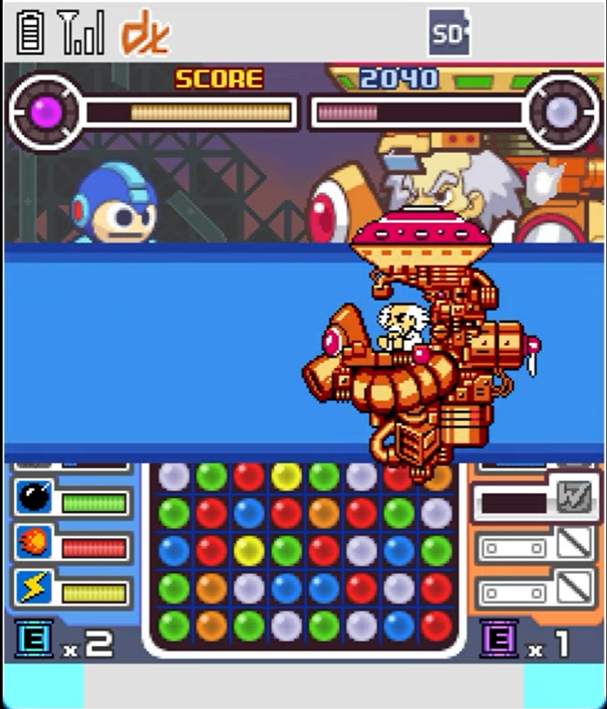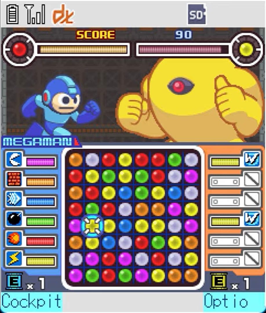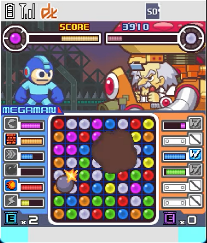 Rockman: The Puzzle Battle is a tile-matching puzzle game with RPG elements. Players take on the role of Mega Man as he battles classic Robot Masters through puzzle-based combat. The gameplay involves matching colored gems to charge attacks and use special abilities, a formula familiar to fans of the Puzzle Quest series.